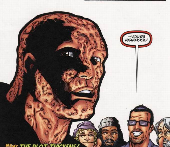 Дэдпула потом наняла Церковь Единого Мира, чтобы тот украл образцы одного вируса Фасад из Суниик Фармакопейи, что в Германии. Церковь хотела использовать их для того чтобы превратить всех в синекожий созданий, как они сами. Дэдпулу, помимо всего прочего, было обещано, что его избавят от уродующих его тело шрамов и ожогов. Воодушевленный, он с радостью выполнил это задание и стал первым, кому был введен новый образец сыворотки. Его кожа стала синей, и он полностью влился в Церковь Единого Мира. Вскоре после этого за Церковью стал следить Кейбл, пытаясь выяснить тайный замысел организации. Его быстро обнаружили, но не напали, а «позволили» мирно следить за ними. Впрочем, Кейбл все равно докопался до истины, и тогда Дэдпул, до сих пор притворявшийся невинной овечкой, напал на него. Кейбл, сам получивший дозу вируса, практически не смог оказать ему особого сопротивления. Но инъекция, сделанная Пулу, в конце концов пересилила его же хилинг фактор, и Дэдпул начал таять. Ни Кейбл ни Дэдпул не могли использовать свои способности, и Кейбл решил что необходимо слить их ДНК. То есть Кейбл получил часть структуры ДНК Дэдпула и наоборот. Дэдпул теперь мог использовать способности Кейбла к телепортации (которое он назвал «телоскольжением»), а Кейбл регенерировал более эффективно благодаря хилинг фактору Дэдпула. В результате присутствия вируса Дедпул сумел даже вернуть себе нормальный облик, но, стоило Кейблу уничтожить вирус, как кожа Дедпула снова покрылась вздутиями и ожогами.